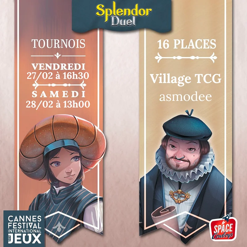 Que vous soyez team Splendor ou Splendor Duel, nous vous proposons plusieurs tournois lors du Festival des Jeux Cannes !