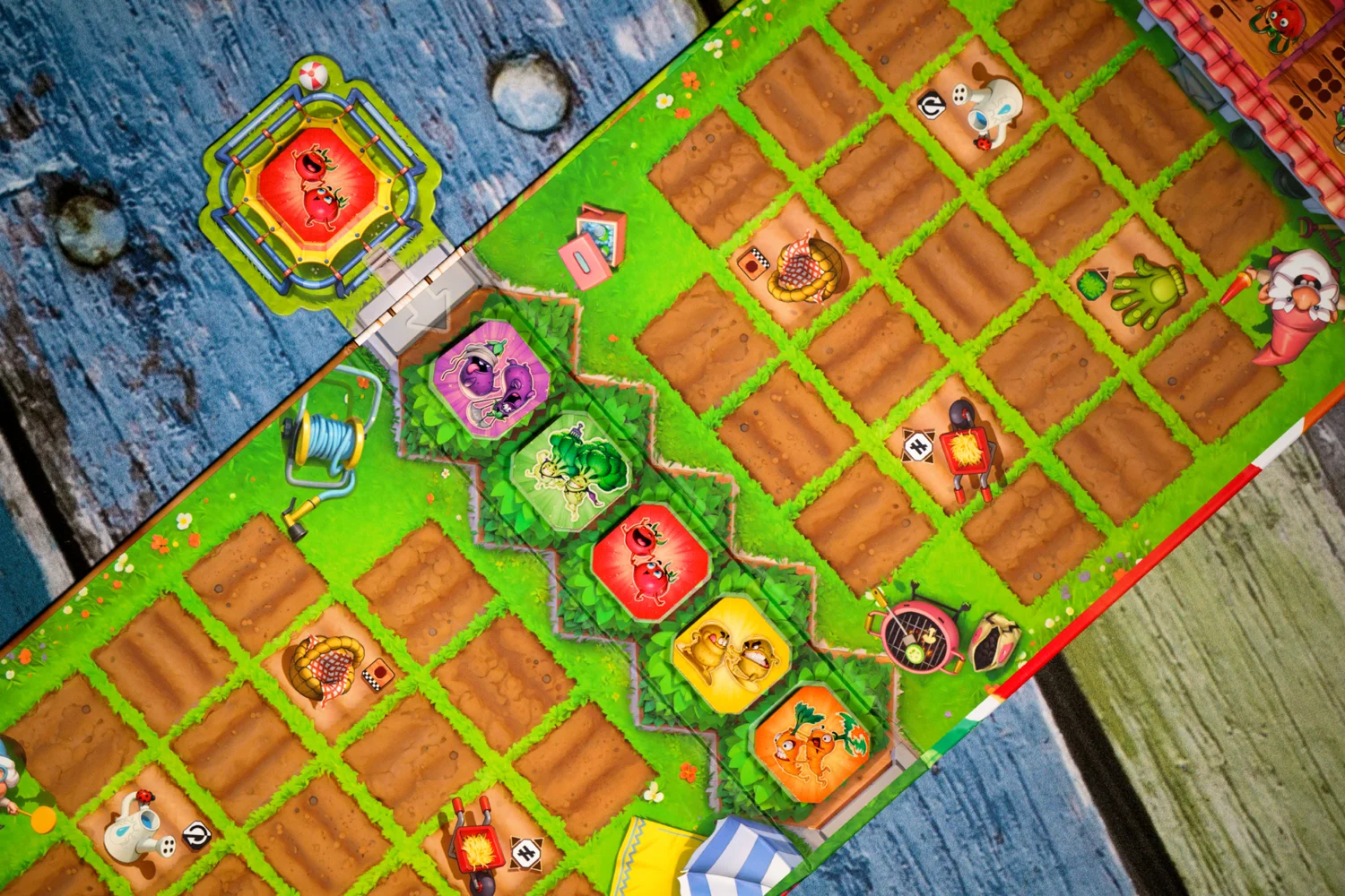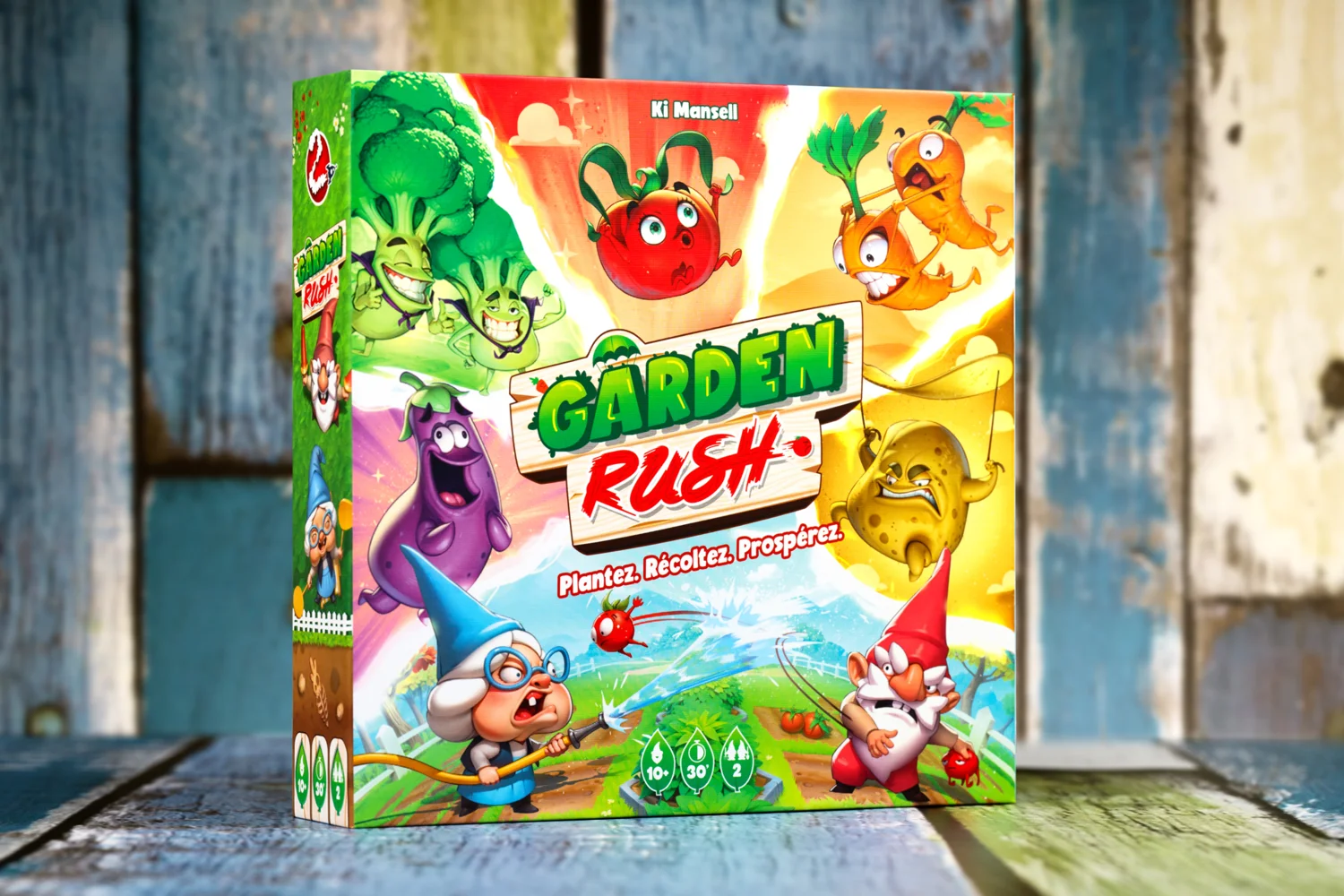 In the board game Garden Rush, unfold the box and transforms it into a real dueling vegetable garden!