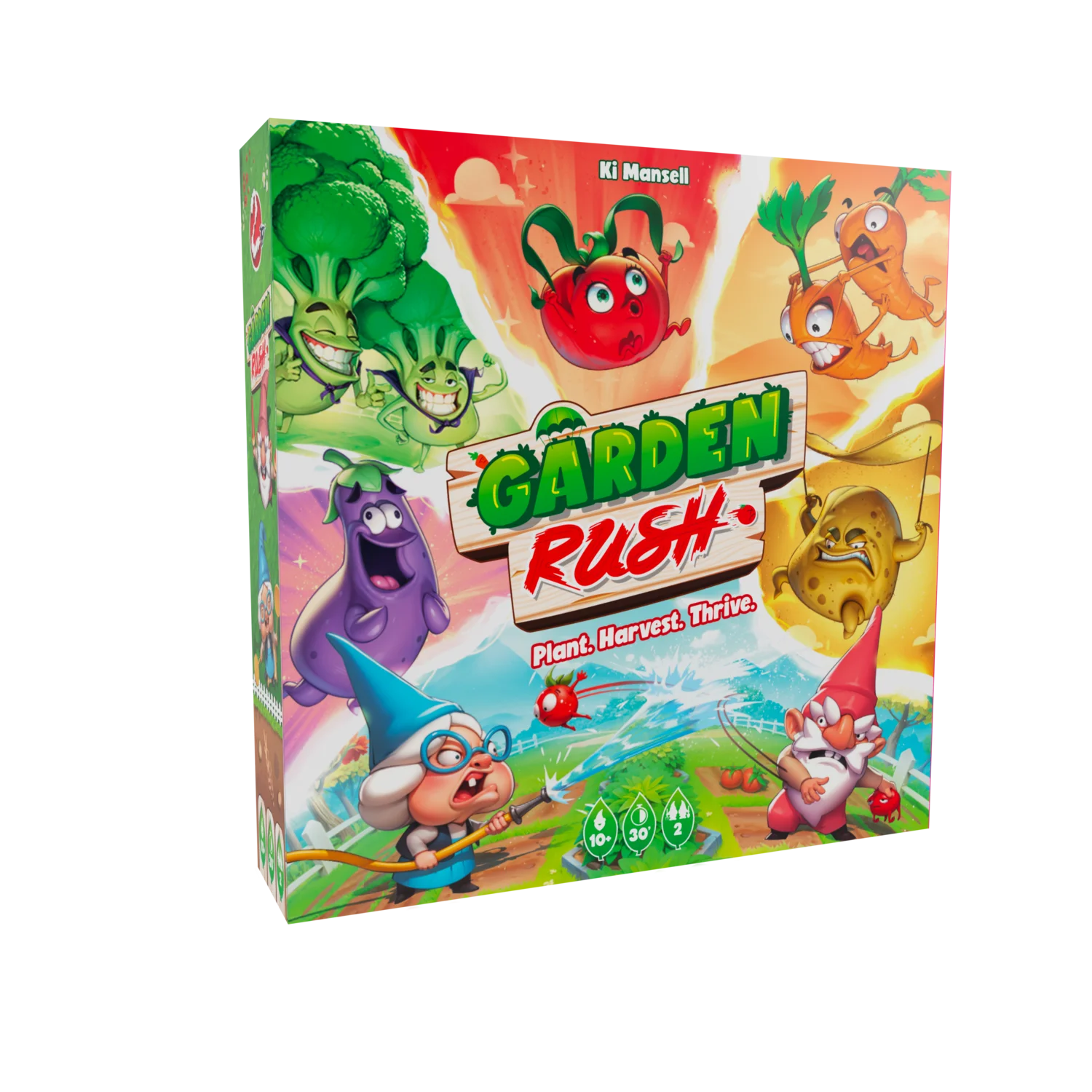 In Garden Rush’s board game, skillfully plant Veggies in your Garden and harvest them in specific patterns. Use Tools to help your Garden flourish and get the most out of it, or use them to create nuisances for your opponent.